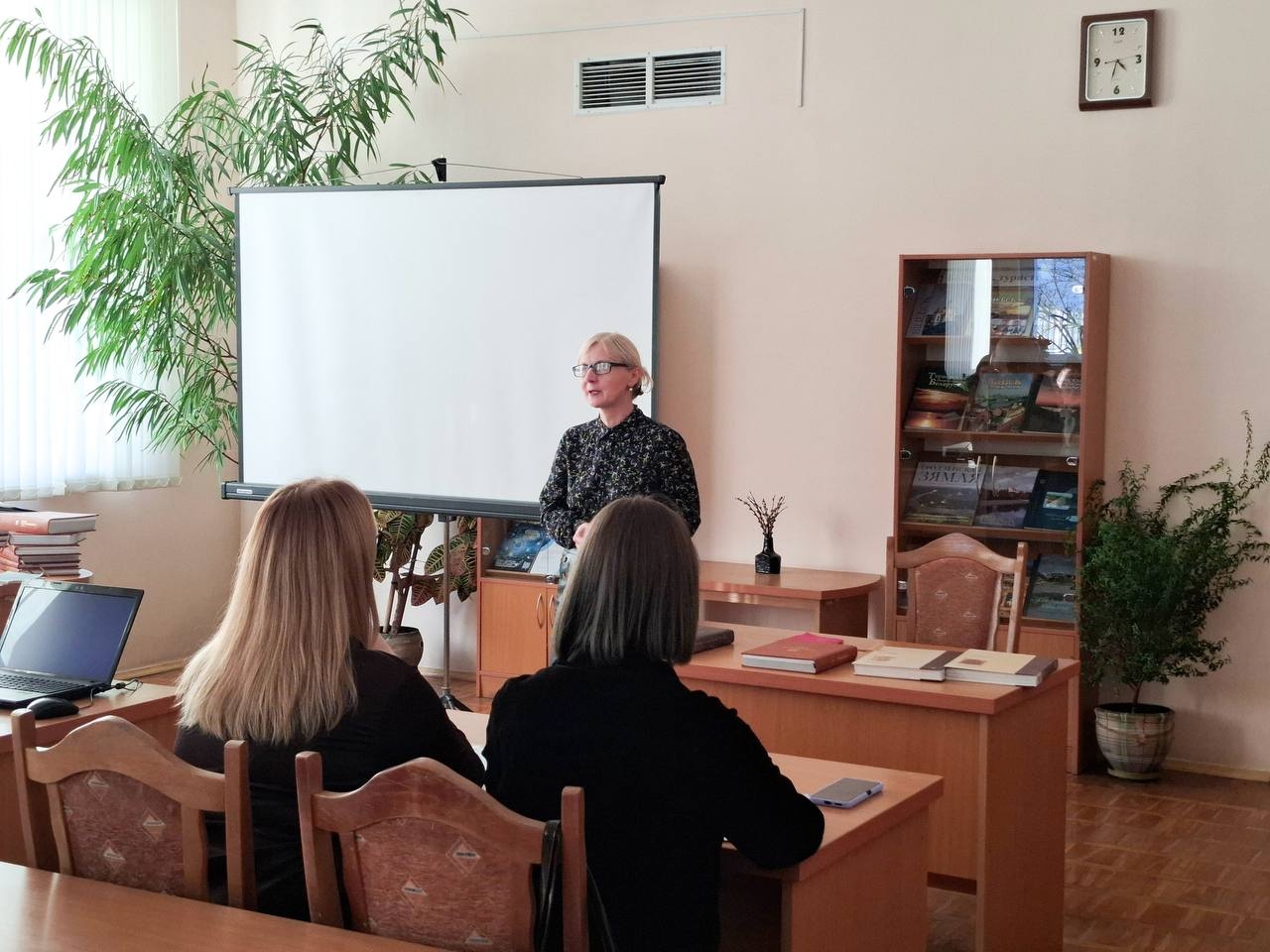 Ведущий библиотекарь Ольга Михайловна Михайлова познакомила гостей с книжными памятниками из фондов библиотеки, представив ценные факсимильные и репринтные издания. Особый интерес вызвала презентация студентки 5 курса факультета «Дизайн и мода» Алины Романьковой, которая представила исследование «Скульптурные памятники Беларуси, посвящённые истории письменности».